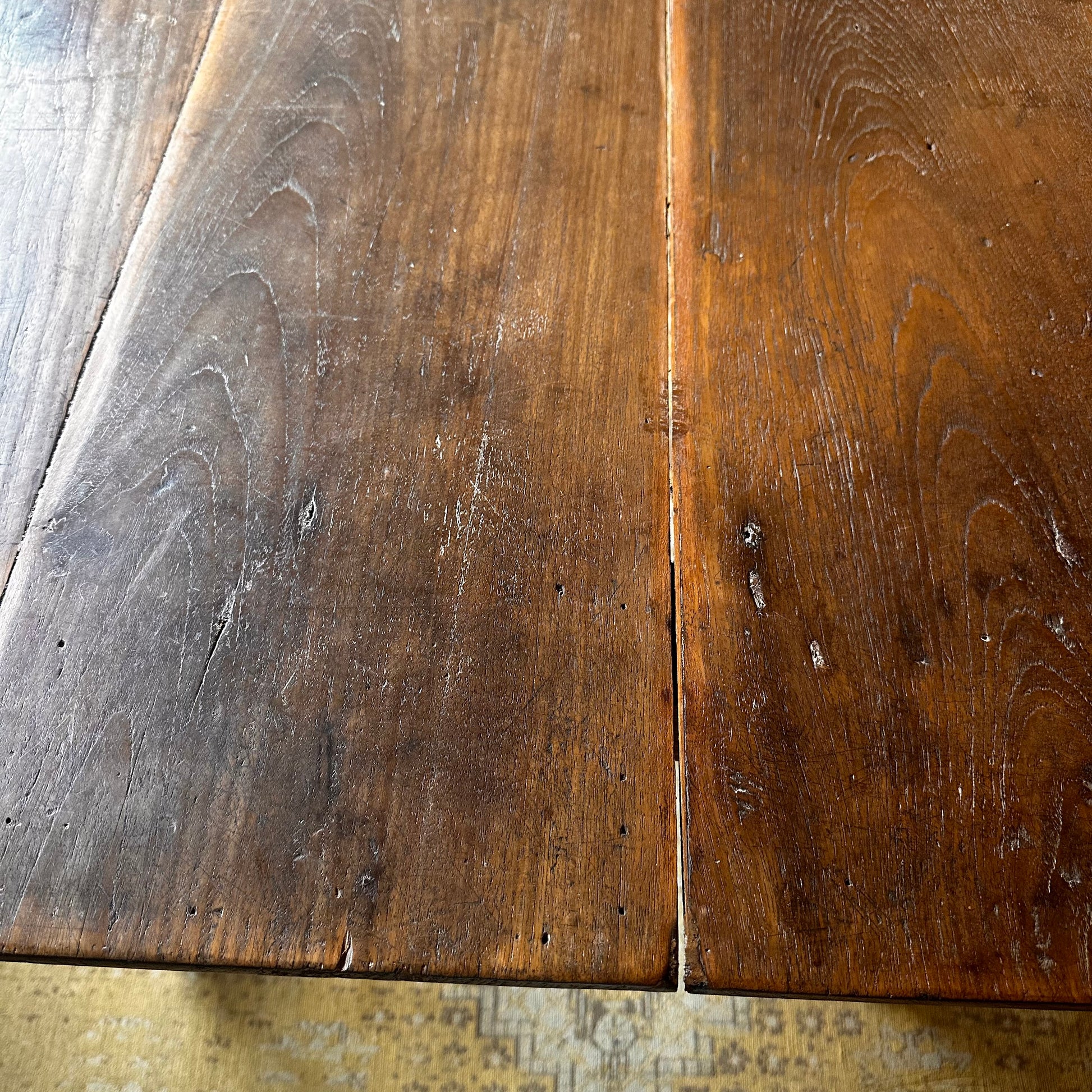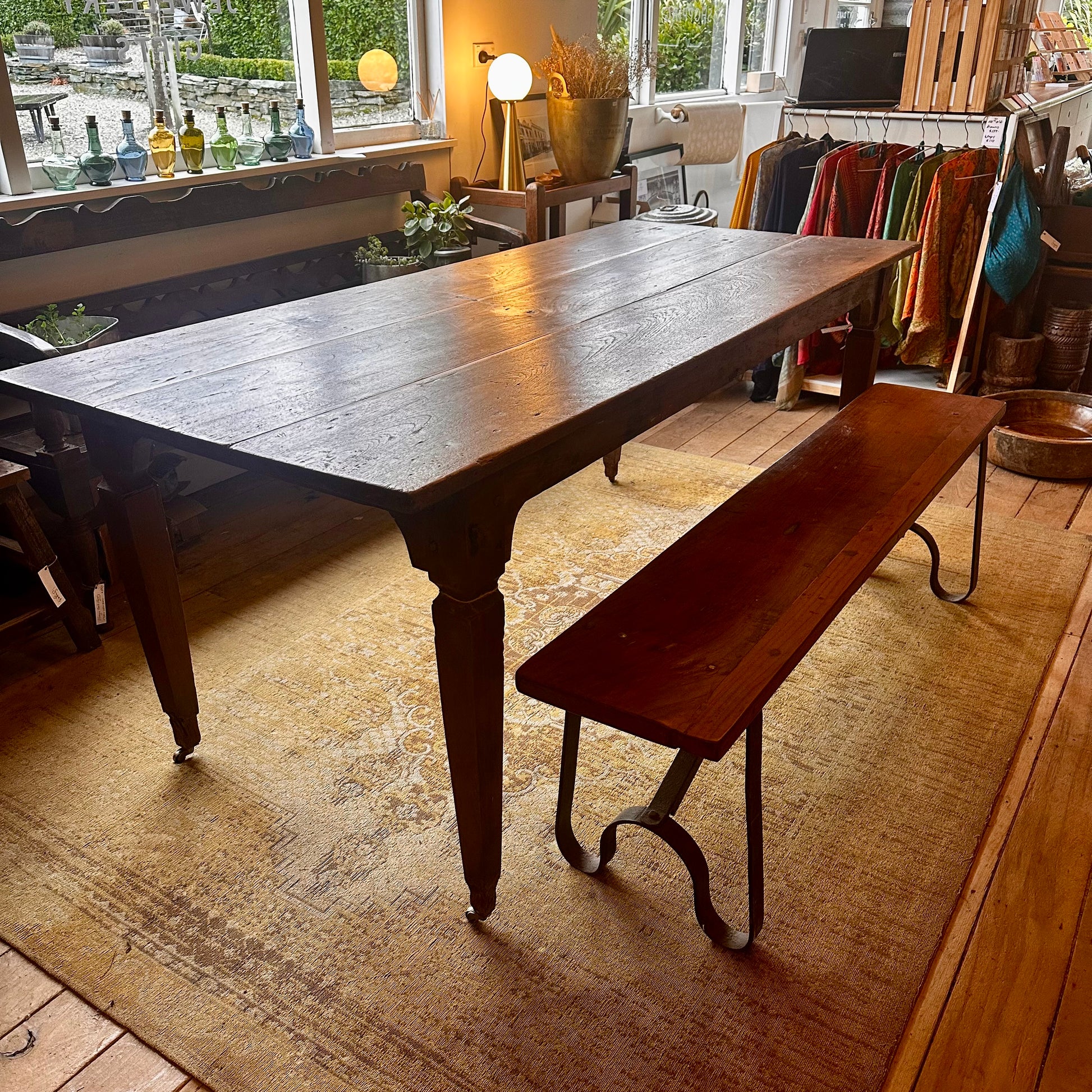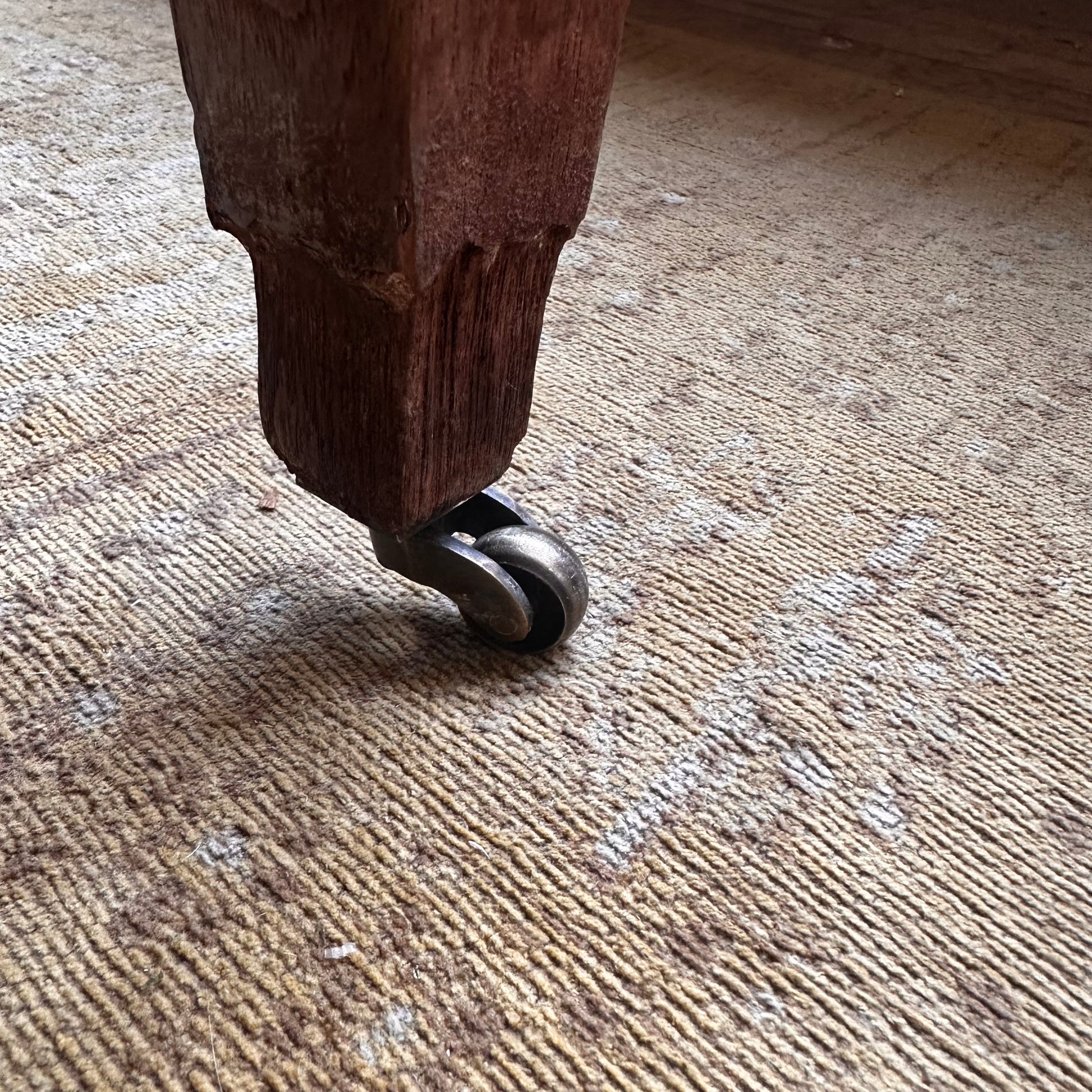 A lovely hand crafted vintage teak dining table with brass castor wheels and great vintage character including the usual cracks and markings. The table is 100% dry and structurally stable. We do expect any further cracking now being acclimatised to the dry Central Otago climate.